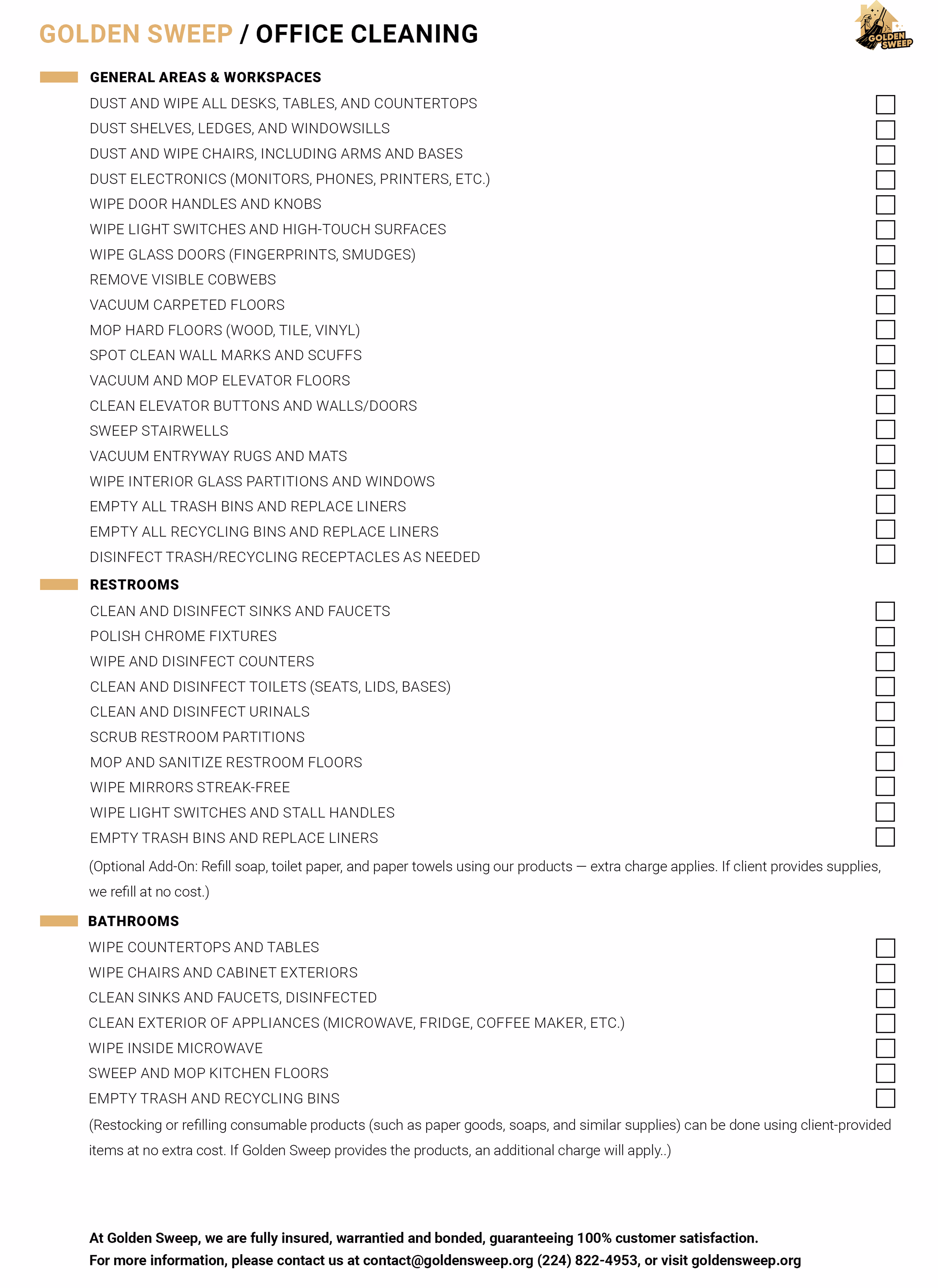Let us take care of the cleaning so you can focus on what really matters. Enjoy a fresh, tidy space every day with Golden Sweep.